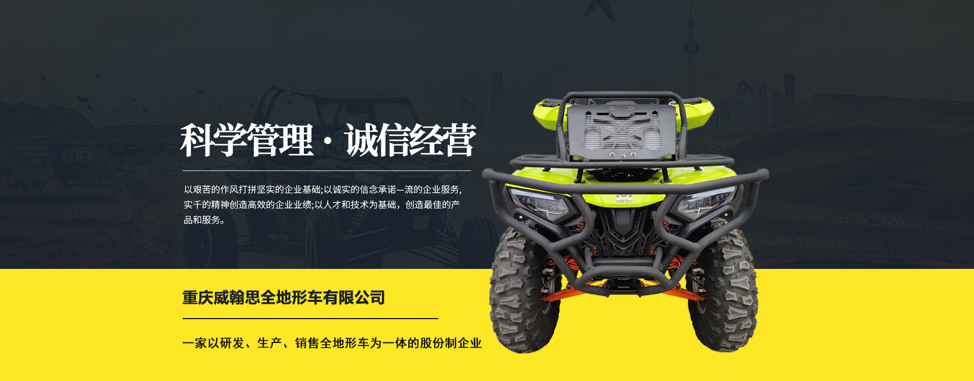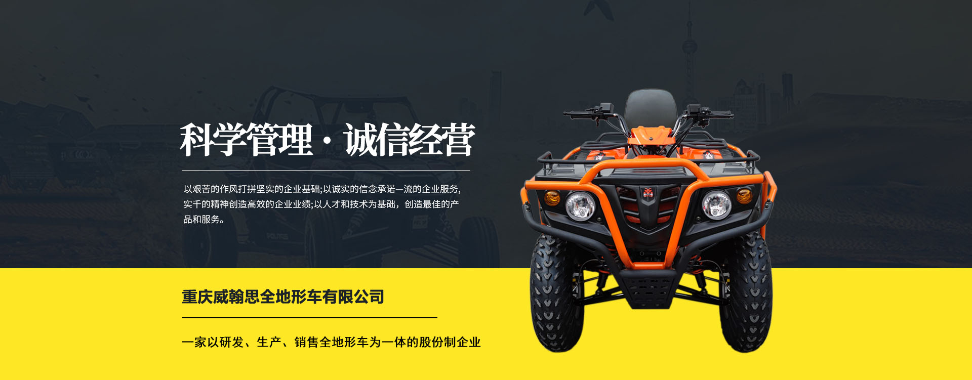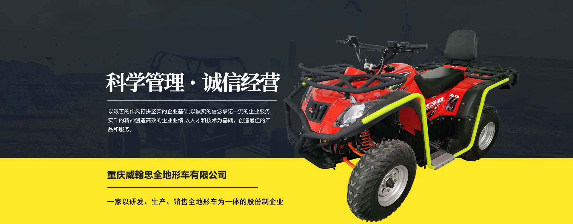 重慶威翰思全地形車有限公司成立于2016年9月,一家以研發、生產、銷售全地形車為一體的股份制企業。公司銷售額超過5000萬。